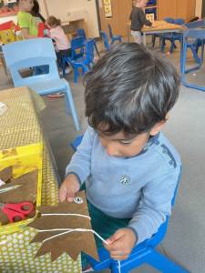 Within each theme, we plan a range of activities which deliver the various areas of the curriculum through stories, crafts, themed free play and adult led activities. We cover Letters and Sounds every day and Mathematics is woven through our curriculum activities.