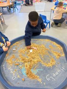 November started with Remembrance Day, doing lots of activities involving paint, rice and shredded paper. We all joined in with the whole school for the 2 minute silence.