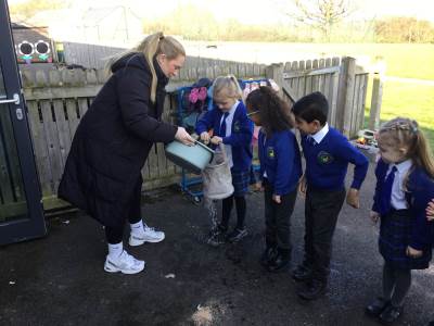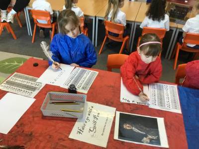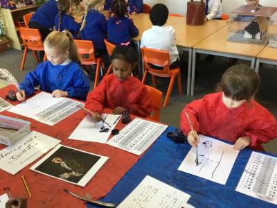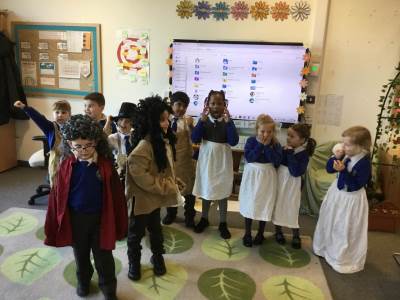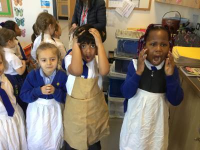 We had a lovely visit on Wednesday 4th March from Somerset Heritage Trust to teach us all about the Great Fire of London. We learnt about how the fire started, and all the important people of the time like Samuel Pepys and Thomas Farriner. We had a chance to try out how they used to put the fires out with a bucket, we tried writing with a quill and we dressed up as bakers, firemen and King Charles.