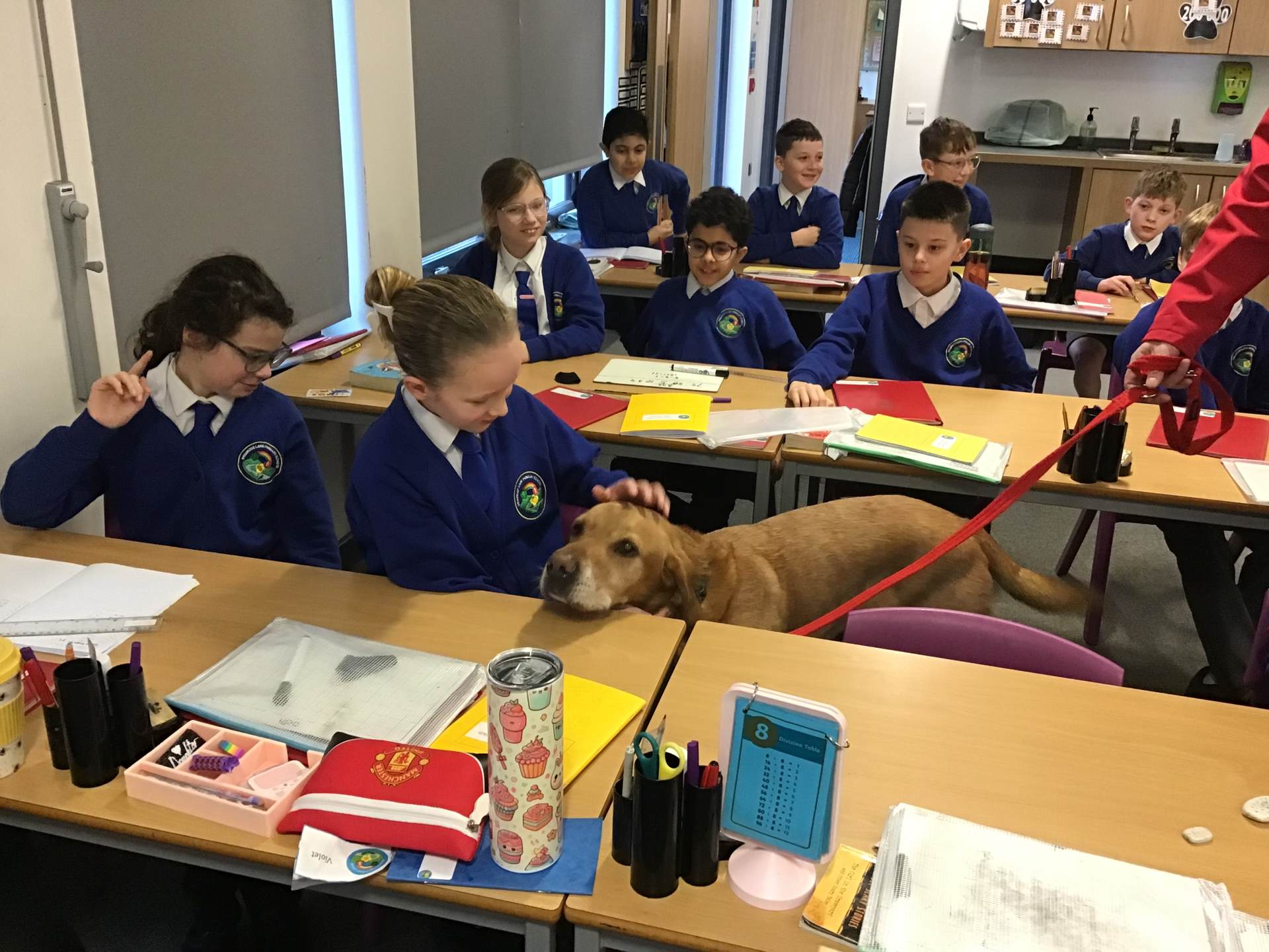 Today, we have had a lovely visit from Ferris, who is a service dog ambassador. He helped us to learn about what service dogs do, how they help veterans and when it is okay to approach a service dog. Ferris (and his team Bryan and Nigel) showed us some tricks and we were lucky enough to have a meet and greet with him, making sure his coat was off so he knew it wasn't work time!