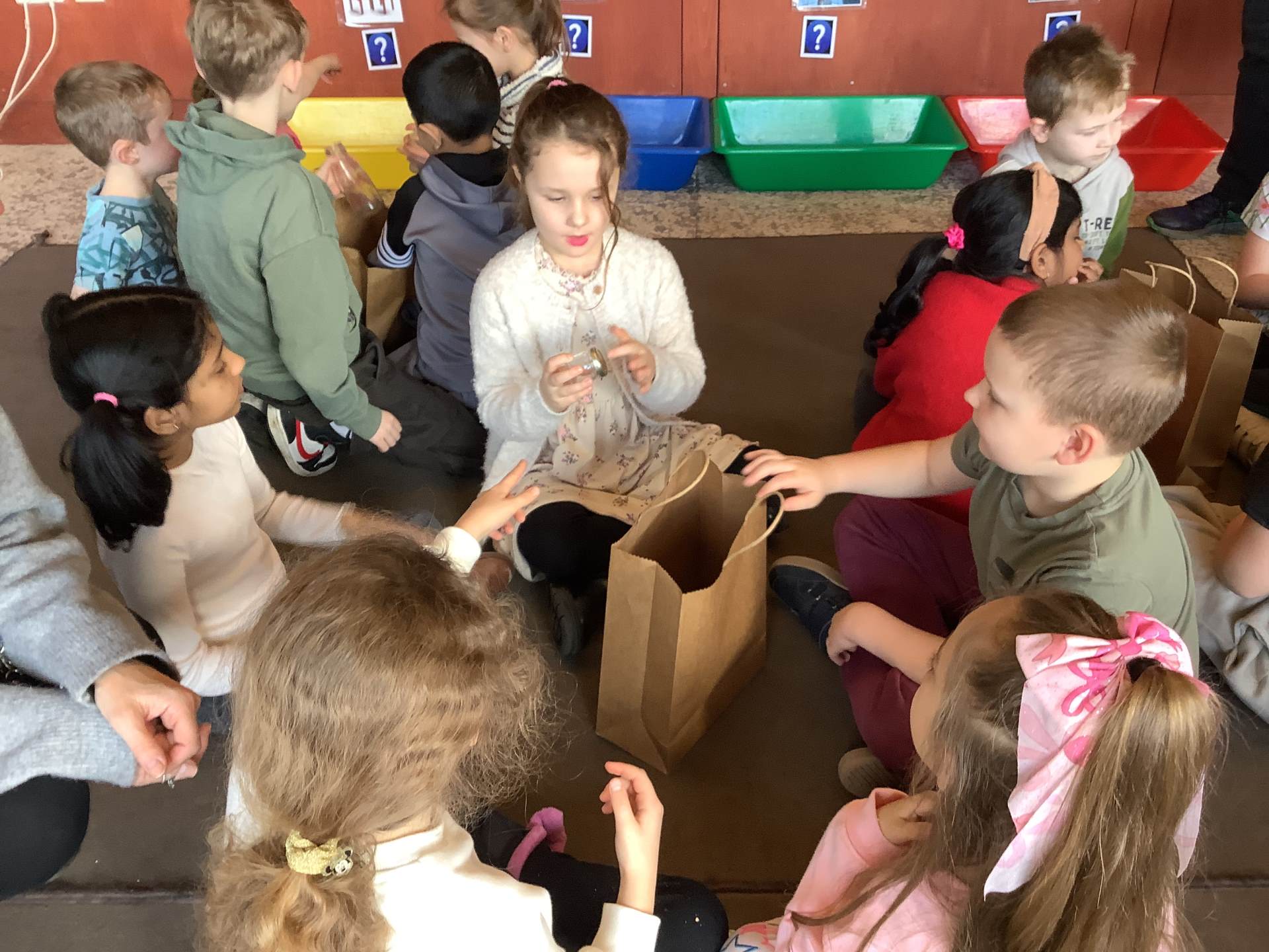 We split into 3 groups. The first group went on a material hunt through the museum, the second group made wool magnets and the third group played a game of ‘Guess the item’. Afterwards we swapped and ensured each child took part in every activity.