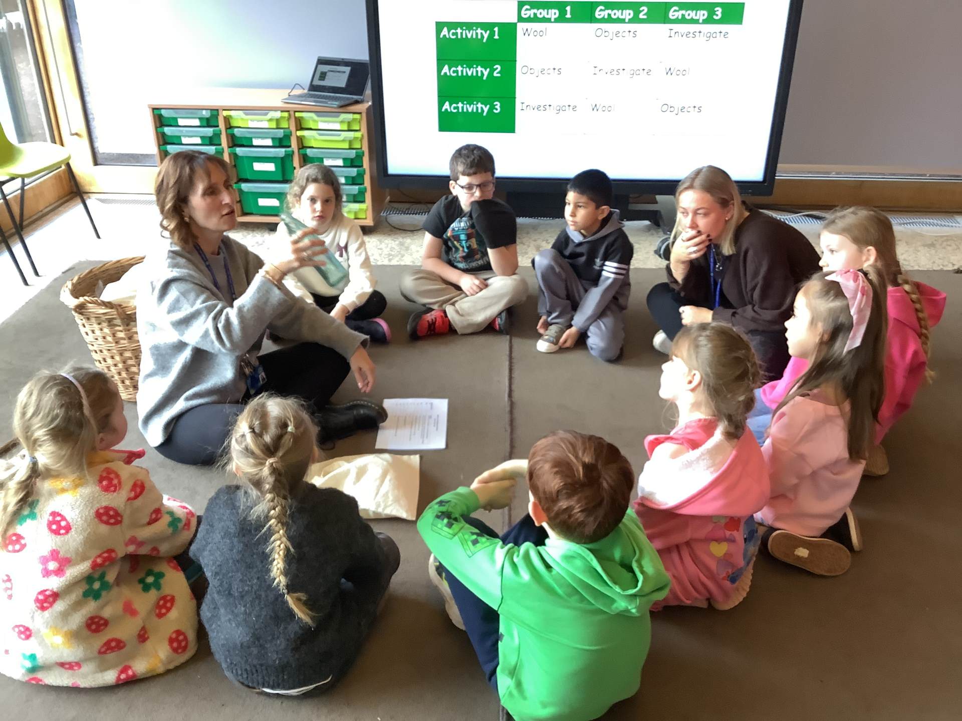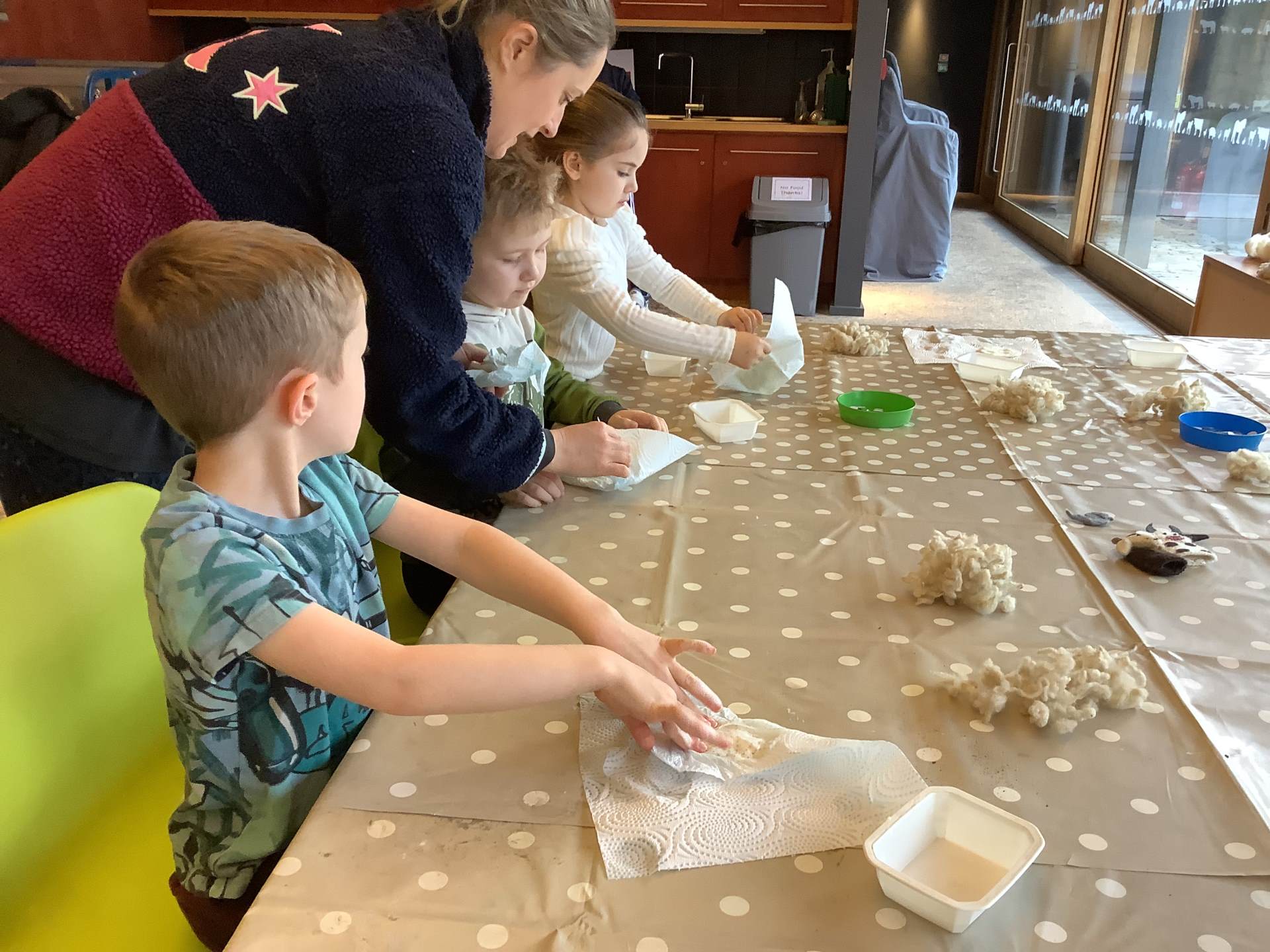 We split into 3 groups. The first group went on a material hunt through the museum, the second group made wool magnets and the third group played a game of ‘Guess the item’. Afterwards we swapped and ensured each child took part in every activity.